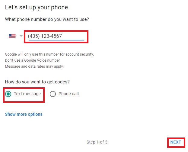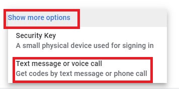 Note: If you do not see the “Text Message” option, click on “Show more options” and then click on “Text message or voice call”