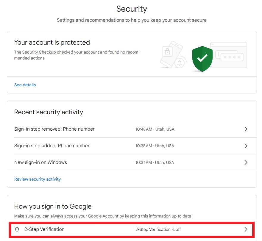Step 5: Click “2-Step Verification” under the “How you sign in to Google” section.