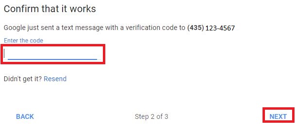 Step 8: Enter the code received on your phone into the section titled “Enter the code”